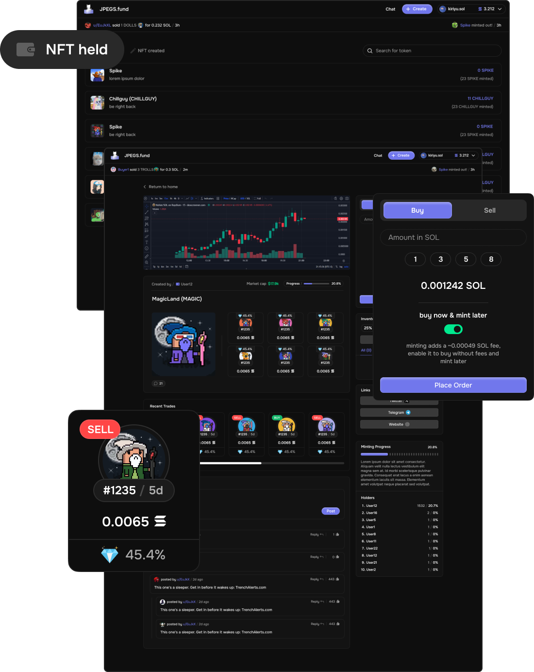 A new home for JPEGS. Launch & trade NFTs with instant liquidity on bonding curves.